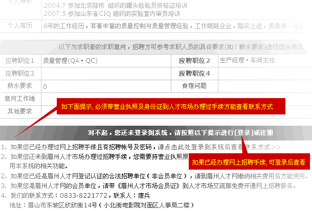 4、如果您是眉州人才網(wǎng)的會(huì)員單位,請(qǐng)帶《眉州人才市場會(huì)員證》到人才市場交流部免費(fèi)開通網(wǎng)上招聘服務(wù)。